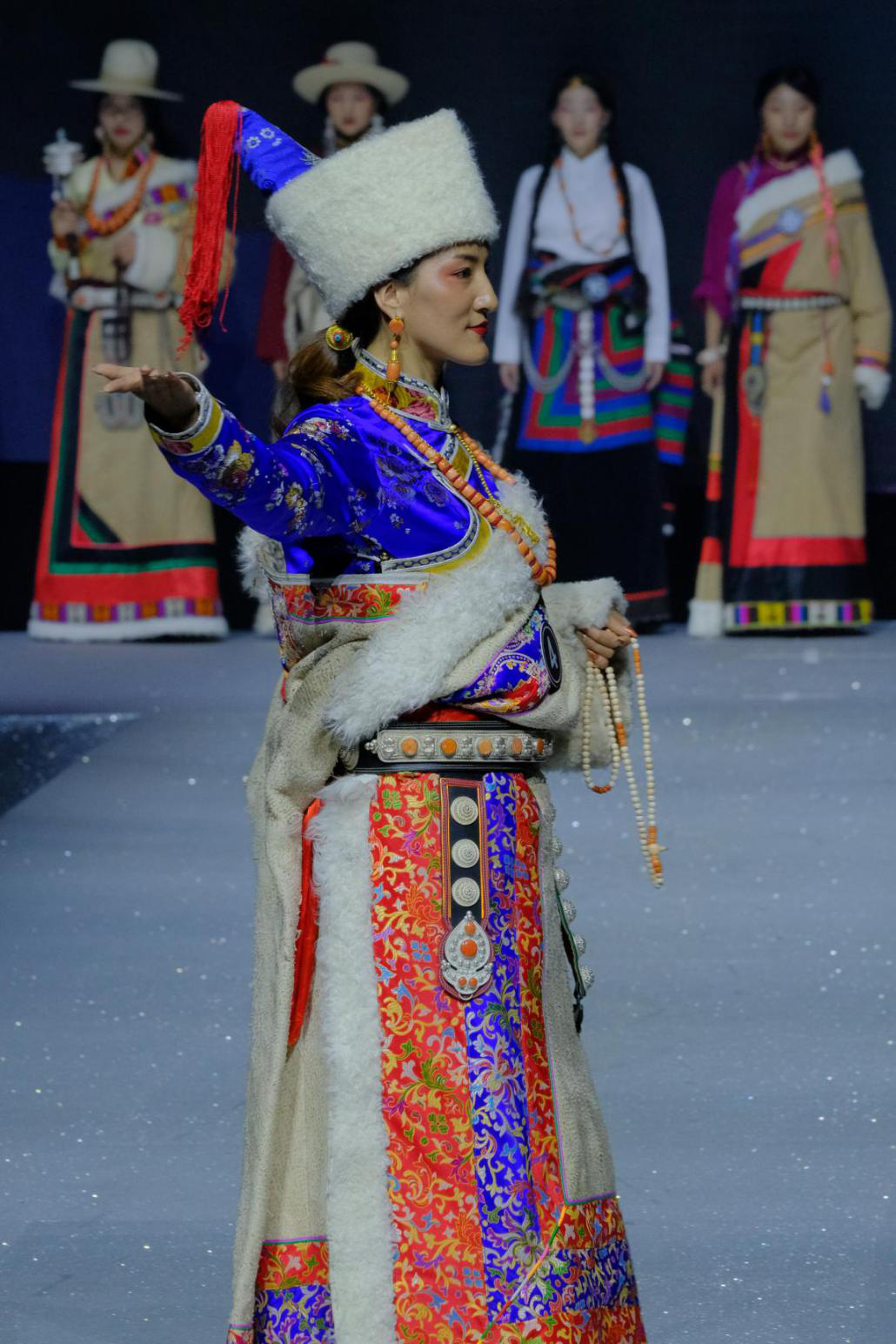 本屆藏模大賽秀臺以“從雪山走下的民族面孔”為設(shè)計理念,通過光影鋪設(shè),秀臺整體呈現(xiàn)“雪域景”、“都市風(fēng)”兩大場景,現(xiàn)場觀眾不僅能置身寰宇之巔,近距離觸摸藏民族燦爛的服飾文化,同時能夠得以一睹百大藏模時尚高光的驚艷瞬間。