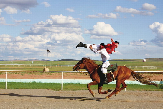 飲食中多以奶制品和牛羊肉為主,糧食為輔,喜飲奶茶。居住方面,在夏秋季節(jié)多住容易拆建和搬遷的蒙古包,而在冬春季節(jié)則住保溫防寒的土木或磚木房屋。馬匹和木制大轱轆“勒勒車”是牧民傳統(tǒng)的交通工具,在原察哈爾地區(qū)還曾流行特有的架桿車。那達慕節(jié)”和““祭敖包”是蒙古族牧民的傳統(tǒng)節(jié)日,節(jié)日期間要舉行賽馬、摔跤、射箭等競技活動和文化娛樂活動,隨著經(jīng)濟的發(fā)展,商品貿(mào)易已成為節(jié)日的重要組成部分。蒙古族人民喜歌善舞,特別是頗具民族特色的婚禮習俗的熱鬧場面更是令人如醉如癡。生活在農(nóng)區(qū)和半農(nóng)半牧區(qū)的蒙古族在生活方式和生產(chǎn)方式上已經(jīng)發(fā)生了很大的改變,在衣著上多與漢族無大差別,飲食上糧食的比重增加,肉奶的比重減少,民居則已定居在漢式的磚木、土木房屋中。