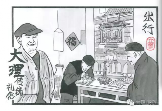 彝族人外出遠(yuǎn)行講究平安。出嫁的姑娘回娘家或從娘家返回婆家,兒女外出上學(xué)、當(dāng)兵,男人出遠(yuǎn)門辦事、外出做生意等,都講究出行的日子,即每月農(nóng)歷初一和十五不能出門,單日也不能出門離家,只有雙數(shù)才能出門,長時間離家的,離家前還要?dú)㈦u煮肉祭祀天地神和祖先,以求保佑出行者平安無恙,祭祀后,還要看卦。